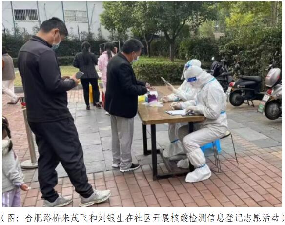 全员参与服务,筑起抗疫长城。身处疫情封控区域的朱茂飞、刘银生等人,也积极响应“疫情磨砺初心、旗帜彰显担当”号召,就地转为社区疫情防控志愿者,换下工作装,化身“大白”,投身到社区防疫志愿队伍工作中去,协助防疫人员开展排查登记、秩序引导、信息录入等工作,为所在社区抗击疫情添砖加瓦,用实际行动彰显责任与担当。
