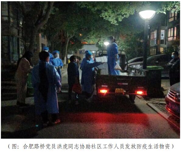 疫情考验初心,旗帜方显力量。疫情防控期间,合肥路桥党员同志们勇当社区疫情防控志愿服务“排头兵”,让党旗在抗“疫”一线高高飘扬。“已到岗”——10月23日7:00,合肥路桥党员洪虎同志在接到瑶海区琥珀社居委茗园临时党支部的通知后,30分钟到达指定防疫岗位。在过去的一周时间里,他当过封控小区“守门员”,积极协助防疫人员督促居民落实封控隔离要求;做过疫情防控“宣传员”,手持喇叭一遍一遍宣传疫情防控措施;当过核酸检测“服务员”,连续数个小时一个接一个登记每个人员核酸信息;做过生活物资“快递员”,披星戴月挨家挨户给居民发放生活物资......过去的一周时间里,他在多个身份之间不停转换,不分昼夜忙碌着,冲锋于疫情防控一线!