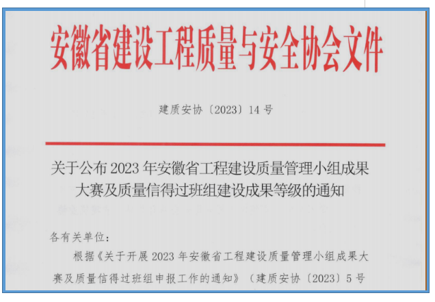 外围现金星空官网 > 外围现金星空官网 > 详细新闻近日,安徽省建设工程质量与安全协会发布了2023年安徽省工程建设质量管理小组活动评审结果,合肥路桥QC小组成果喜获佳绩,11项成果荣登榜单。