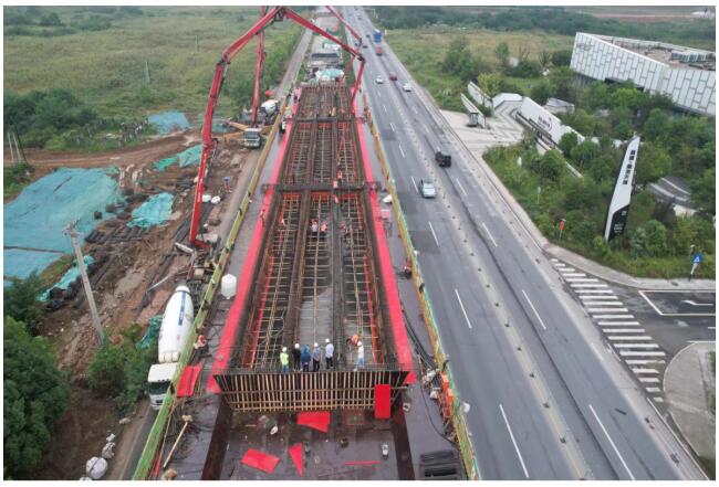 G312合六路(肥西段)首联浇筑箱梁位于项目通航大道上跨节点右幅第一联,为单箱三室截面,桥跨组合3×30m,混凝土总方量950方,本次底腹板浇筑500余方。为保证首联箱梁的顺利浇筑,作业前项目部严格按照技术批复方案进行交底,同时对模板支撑体系、原材质量、原材贮备、人力投入等情况进行全面检查,有效保障了箱梁顺利浇筑。据悉,项目部计划节前完成首联箱梁顶板浇筑施工。(史常奇)